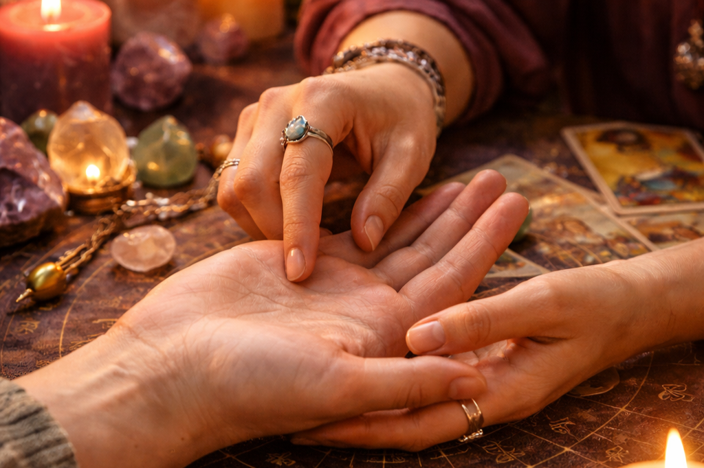 Palm readings interpret the lines, shapes, and mounts of the hand to reveal insights about a person’s character, life path, and future.